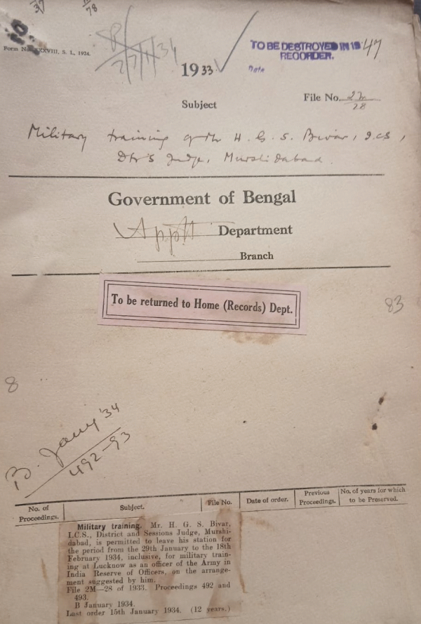 | Rack No. 2, Bundle No. 02, Sl No. 80 Extension of leave of Babu Phani Bhusan Ghosh, Sub-Deputy Collector. | Rack No. 2, Bundle No. 02, Sl No. 81 Particulars up premature retirement of I.C.S. Officers. | Rack No. 2, Bundle No. 02, Sl No. 82 Extension of leave to Mr. J.H.C. Coungill. I.P. | Rack No. 2, Bundle No. 02, Sl No. 83 Military training of Mr. H.G.S. Bivar, I.C.S. Districtand Sessionions Murshidabad. | Rack No. 2, Bundle No. 02, Sl No. 84 Compilation of accounts by primary units only instead of by detailed heads. | Rack No. 2, Bundle No. 02, Sl No. 85 Tours of visitation of the precedence senior captain Church of Scotland, Bengal. | Rack No. 2, Bundle No. 02, Sl No. 86 Natural of the Original Vacancy in consequence of which Babu Bhujagendra Mustafi acted as Subordinate Judge and AdditionalJudge or District Judge. |