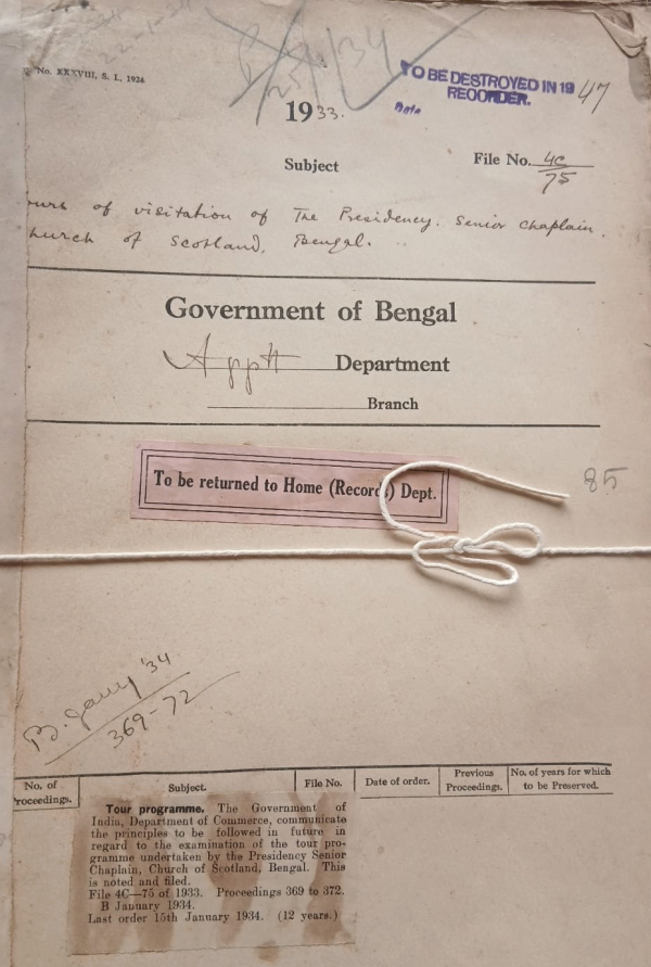 Tours of visitation of the precedence senior captain Church of Scotland, Bengal.