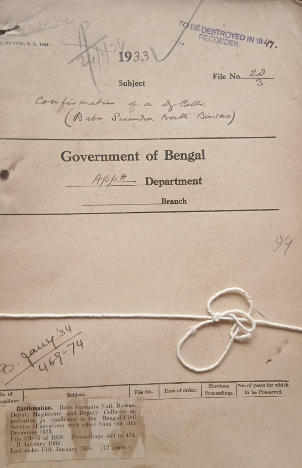 Confirmation of a Deputy Collector (Babu Surendra Nath Biswas).
