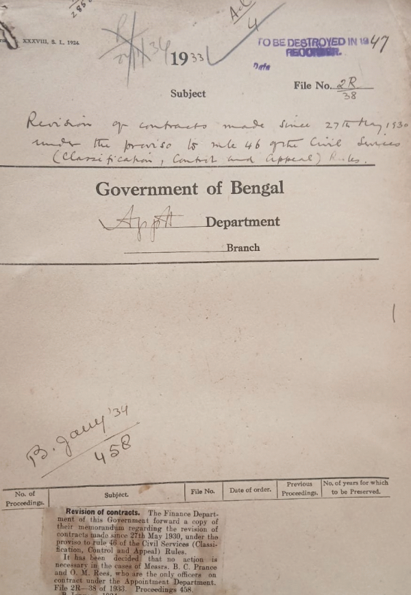 | Rack No. 2, Bundle No. 01, Sl No. 59 Nomination of official members to the Bengal Legislative council. | Rack No. 2, Bundle No. 01, Sl No. 60 Cold-weather postings of I.C.S. officers. | Rack No. 2, Bundle No. 02, Sl No. 100 Proposal exemption of Mr. G. Johnston an Inspector on the provisional list of officers for promotion to the B.P.S. from Passing the Department exam in law and Bengali. | Rack No. 2, Bundle No. 02, Sl No. 101 Revision of contract made since 27 the may 1930 under the proviso to rule 46 of the civil service (Classification control and appeal) Rules. | Rack No. 2, Bundle No. 02, Sl No. 102 Extension of leave of Babu Umesh chandra Sil, Sub-Deputy Collector. | Rack No. 2, Bundle No. 02, Sl No. 103 Posting of Districtand Additional Session Judge in January 1934. | Rack No. 2, Bundle No. 02, Sl No. 104 Appointment of the Revd. W. Boulton, Junior Champlain St. Pauls cathedral Calcutta to be Senior Champlain St. Pauls eathedral |