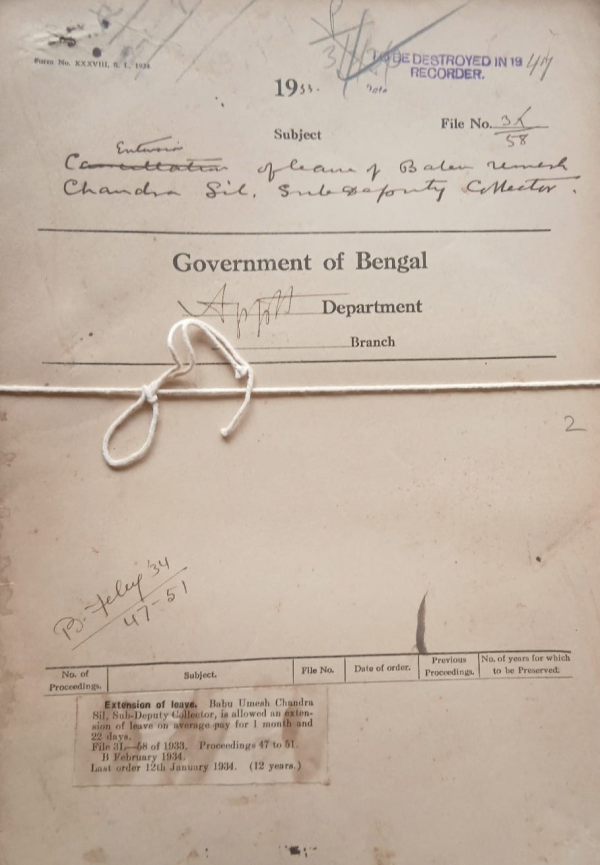 | Rack No. 2, Bundle No. 01, Sl No. 60 Cold-weather postings of I.C.S. officers. | Rack No. 2, Bundle No. 02, Sl No. 100 Proposal exemption of Mr. G. Johnston an Inspector on the provisional list of officers for promotion to the B.P.S. from Passing the Department exam in law and Bengali. | Rack No. 2, Bundle No. 02, Sl No. 101 Revision of contract made since 27 the may 1930 under the proviso to rule 46 of the civil service (Classification control and appeal) Rules. | Rack No. 2, Bundle No. 02, Sl No. 102 Extension of leave of Babu Umesh chandra Sil, Sub-Deputy Collector. | Rack No. 2, Bundle No. 02, Sl No. 103 Posting of Districtand Additional Session Judge in January 1934. | Rack No. 2, Bundle No. 02, Sl No. 104 Appointment of the Revd. W. Boulton, Junior Champlain St. Pauls cathedral Calcutta to be Senior Champlain St. Pauls eathedral | Rack No. 2, Bundle No. 02, Sl No. 105 Passages of Candidates for the all-India Services selected in India who proceed to the United Kingdom for probation. |