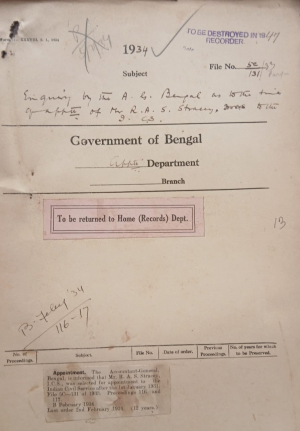 | Rack No. 2, Bundle No. 02, Sl No. 110 Appointment of a special Tribunal at Alipore. | Rack No. 2, Bundle No. 02, Sl No. 111 Application of Rai S. C. Ghatak Bahadur late Magistrate and Collector, Mymensingh for pension. | Rack No. 2, Bundle No. 02, Sl No. 112 Enquiry by the A.G. Bengal appointment certain temporary posts of AdditionalDistrict and Sessionions Judge. | Rack No. 2, Bundle No. 02, Sl No. 113 Enquiry by the A.G. Bengal as with the of appointment of Mr. R. A. S Stacy to the I.C.S. | Rack No. 2, Bundle No. 02, Sl No. 114 Retirement of Mr. H. Quinton I.C.S. on proportionate pension. | Rack No. 2, Bundle No. 02, Sl No. 115 Resignation of the Reverend W. Bolton from the Indian Ecclesiastical establishment. | Rack No. 2, Bundle No. 02, Sl No. 116 Question of the extent to which the military services of surplus Indian Army officers appointment to the Indian Services should count for Civil Pension |