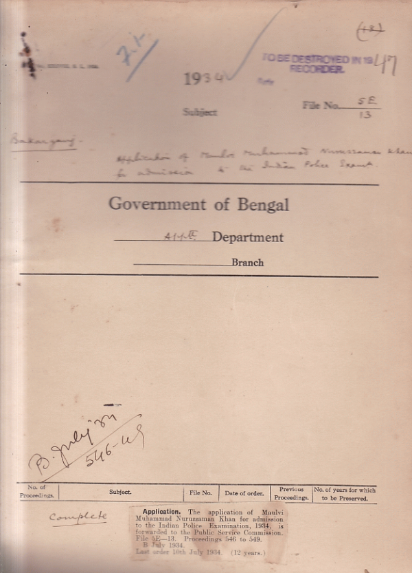 | Rack No. 02, Bundle No. 12, Sl No. 726 Application of Babu Pranab Kumar Sen for admission to the I.P. Exam, 1934. | Rack No. 02, Bundle No. 12, Sl No. 727 Budget estimates of the Christian Burial Board for 1934-35. | Rack No. 02, Bundle No. 12, Sl No. 728 Recruitment of Chaplains on the Indian Ecclesiastical Establishment during 1934-35. | Rack No. 02, Bundle No. 12, Sl No. 729 Application of Mulvi Muhammad Nuruzzman Khan for admission to the Indian Police Examination | Rack No. 02, Bundle No. 12, Sl No. 730 Application of Mulvi Muhammad Nural Karim for admission to the I.P. Examination | Rack No. 02, Bundle No. 12, Sl No. 731 Application of Mulvi Muhammad Shamsul Haq for admission to the Indian Police Examination | Rack No. 02, Bundle No. 12, Sl No. 732 Application of Mulvi Abdul Hai. Maswood for admission to the I.P. Examination. |