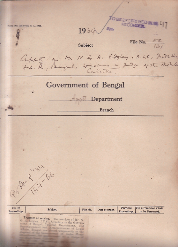 Appointment of Mr. N.G.A. Edgley, I.C.S. Judicial Secretaryand Legal remembrance, Bengal, to Act as a Government of the High Court, Calcutta.
