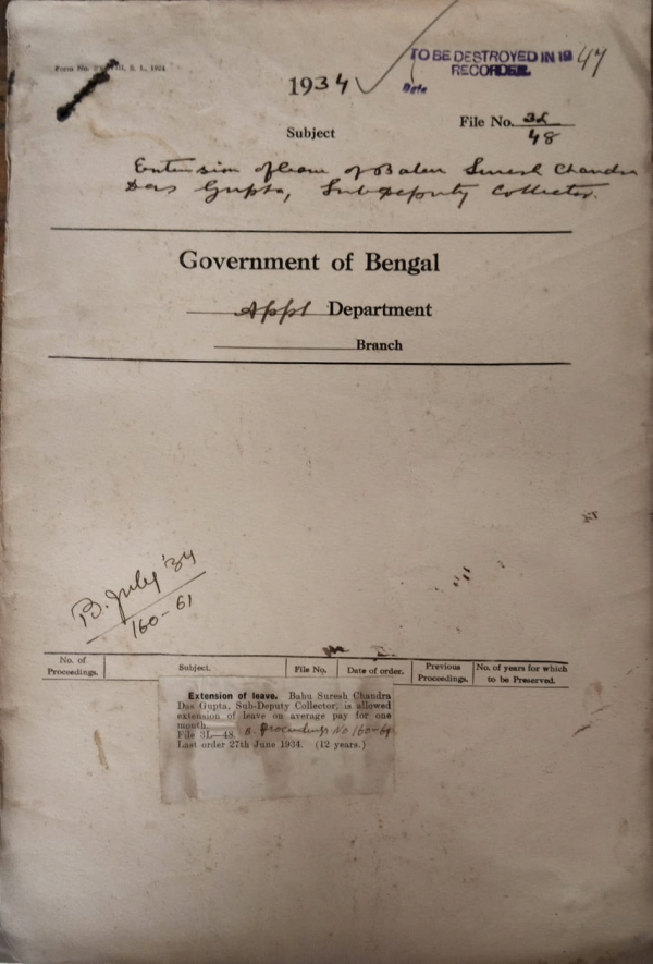 | Rack No. 2, Bundle No. 8, Sl No. 429 Assumption of charge by Mr. K.N. Majundar, Bar-al-law, first Assistant Secretary to Government of Bengal, legislative Department. | Rack No. 2, Bundle No. 8, Sl No. 430 Reprint of certain publications of the Auditor General. | Rack No. 2, Bundle No. 8, Sl No. 431 Procedure for appointment of Deputy Collectors in Charge of wards estates in certain districts. | Rack No. 2, Bundle No. 8, Sl No. 432 Extension of Babu Suresh Chandra Das Gupta, Sub-Deputy Collector. | Rack No. 2, Bundle No. 8, Sl No. 433 Issue of a certificate regarding transfer of Mr. K.A.L. Hill, I.C.S. to Bakarganj to Khulna in the interest of Public Service. | Rack No. 2, Bundle No. 8, Sl No. 434 Increment of Pay of I.C.S. officers on the result of the departmental examination held in may 1934. | Rack No. 2, Bundle No. 8, Sl No. 435 Cost of preparation of electoral rolls of the legislative Assembly in the Calcutta Corporation. |