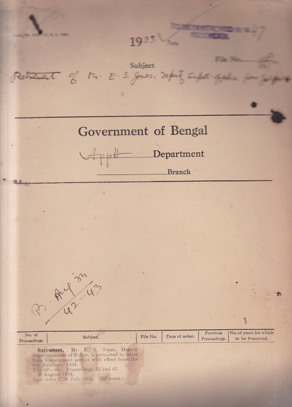Retirement of Mr. E.S. Jones, Deputy Superintendent of Police, from Government Services.