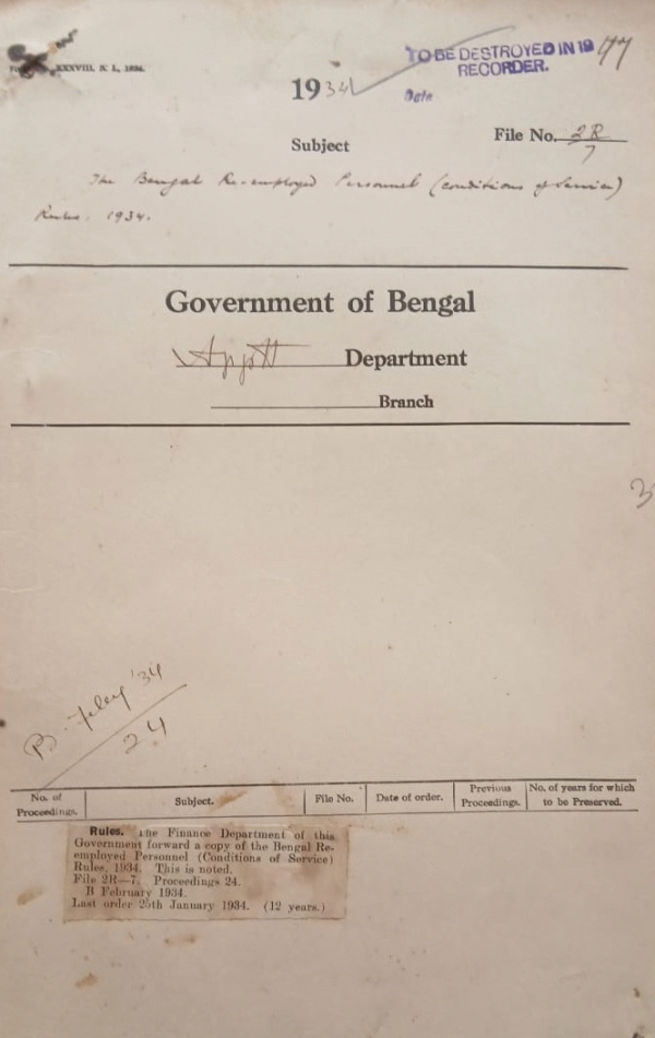 The Bengal Re-employed personnel (Conditions of Service) Rules 1934.