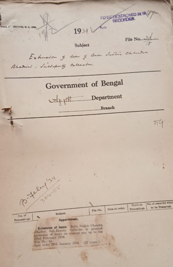 | Rack No. 2, Bundle No. 03, Sl No. 151 Decision of the commission's conference to Muhammadan Deputy Collectors in charge of Subdivisions which require them. | Rack No. 2, Bundle No. 03, Sl No. 152 Number of voters of the Reformed Bengal legislative council as per provisional electoral rolls. | Rack No. 2, Bundle No. 03, Sl No. 153 Supply of Departmental Exam Rules. | Rack No. 2, Bundle No. 03, Sl No. 154 Extension of leave of Babu Sudhir Ch. Bhaduri, Sub-Deputy Collector. | Rack No. 2, Bundle No. 03, Sl No. 155 Grant of motor car advance to the Reverend W.F. Garrod, Chaplain of Dacca. | Rack No. 2, Bundle No. 03, Sl No. 156 Application for an advance from the G.P. Fund (Babu Sukumar Chatarji, M.B.E.). | Rack No. 2, Bundle No. 03, Sl No. 157 Appointment of the Revd. R.E. Lee to act as a member of the Christian Burial Board. |