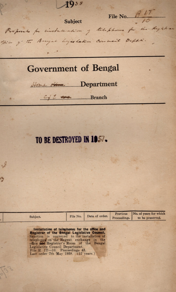 | Rack No. 08, Bundle No. 05, SI No. 239 A.Q. by Mr. M.A.H. Ispahani regarding staff of the B.L.C. | Rack No. 08, Bundle No. 05, SI No. 240 Statement showing menial staffs of the secretariat entitled to winter & Summer Liveries. | Rack No. 08, Bundle No. 05, SI No. 241 A.Q. by Mr. Dhanajoy Roy M.L.A. Regarding communal representation in the staff of the Assembly & Council Department. | Rack No. 08, Bundle No. 05, SI No. 242 Installation of telephones for the office & Registrar of the B.L.C. | Rack No. 08, Bundle No. 05, SI No. 243 Reports of the Provincial Delimitation on committee of other local govt. + the final decision on the recommendation of the Committee. | Rack No. 08, Bundle No. 05, SI No. 244 C.Q by Khan Bahadur Syed Muazzam Uddin Hossain regarding allotment of days for non-business in the council. | Rack No. 08, Bundle No. 05, SI No. 245 Motion under section 118 of the B.L.C. Rules & Standing orders by Mr. Narendera Chandra Datta, M.L.C. regarding fixing of business of the Council. |