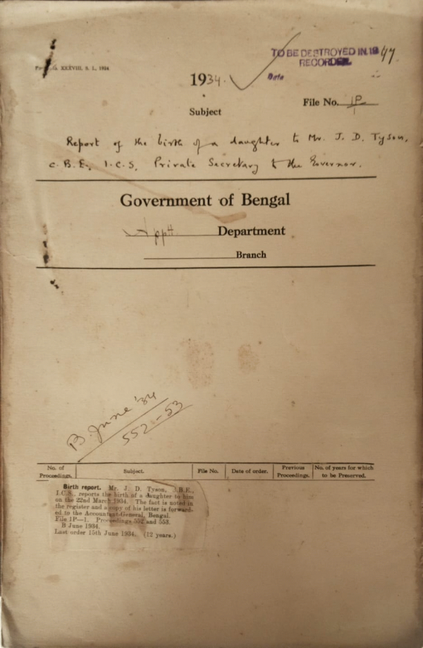 | Rack No. 2, Bundle No. 8, Sl No. 455 T.A. of Mulvi Chaudhuri Abid Ali, Sub Deputy Collector, Noakhali. | Rack No. 2, Bundle No. 8, Sl No. 456 Third class powers of Babu Satya Charan Bhattacharjee Probationary Deputy Magistrate Howrah. | Rack No. 2, Bundle No. 8, Sl No. 457 Powers of Babu Nalini Kumar Das Gupta Sub. Deputy collector, Midnapore. | Rack No. 2, Bundle No. 8, Sl No. 458 Report of the birth of a daughter to Mr. J.D. Tyson, C.B.E, I.C.S. Private secretary to the governor. | Rack No. 2, Bundle No. 8, Sl No. 459 Modification of Babu Dwark Nath Das, Sub-Deputy, Collector. | Rack No. 2, Bundle No. 8, Sl No. 460 Modification of Mulvi Muhammad obaidul Kader Sub-Deputy Collector, Hooghly. | Rack No. 2, Bundle No. 8, Sl No. 461 Invalid pension of Mulvi Shaikh Abdulla, late a Sub-Deputy Collector. |