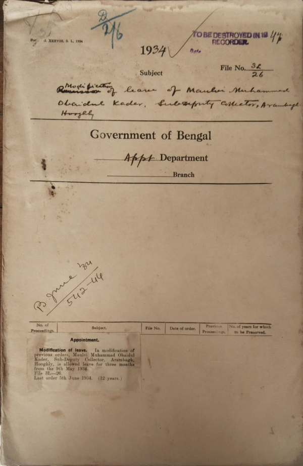 Modification of Mulvi Muhammad obaidul Kader Sub-Deputy Collector, Hooghly.