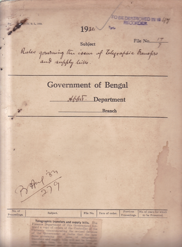 | Rack No. 02, Bundle No. 12, Sl No. 792 Three monthly estimates for 1934-35 (Central). | Rack No. 02, Bundle No. 12, Sl No. 793 Statement of grant and expenditure for the year 1933-34, under, 37.C. Examination | Rack No. 02, Bundle No. 12, Sl No. 794 Procedure for sending requisitions for electrical works and repairs. | Rack No. 02, Bundle No. 12, Sl No. 795 Supply bills and telegraphic transfers. | Rack No. 02, Bundle No. 12, Sl No. 796 Amendments of the rules regarding classification of subordinate services under the central Government | Rack No. 02, Bundle No. 12, Sl No. 797 Employment of outside coolies for the dusting and re-arranging of records. | Rack No. 02, Bundle No. 12, Sl No. 798 Application of Mulvi Muhammad Anisuzzaman for admission to the Indian Police Exam. |