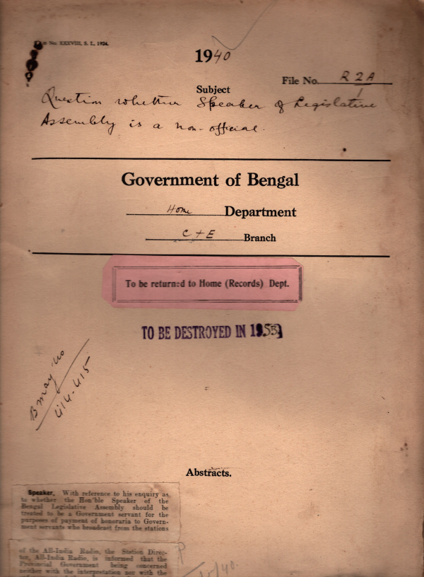 | Rack No. 08, Bundle No. 13; SI No. 782 Exchange of official publications between the Govt. of Punjab and Bengal on a reciprocal basis. | Rack No. 08, Bundle No. 13; SI No. 783 Formation of a separate Revenue Branch in the Revenue Department. | Rack No. 08, Bundle No. 13; SI No. 784 List of Candidates at elections to the Bengal legislative Council. | Rack No. 08, Bundle No. 13; SI No. 785 Question whether speaker of legislative Assembly in a non-official. | Rack No. 08, Bundle No. 13; SI No. 786 Special motion regarding amendment of the Govt. of India (Distribution of Revenue) order, 1936. | Rack No. 08, Bundle No. 13; SI No. 787 Application of Babu P. Nath Roy Choudhury for inclusion of his name in the current electoral roll for the Dacca North General constituency of the Bengal legislative Council. | Rack No. 08, Bundle No. 13; SI No. 788 Increase in the rates of P. and O fares. |