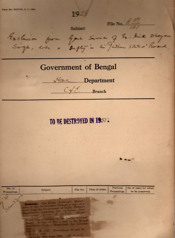 | Rack No. 08, Bundle No. 05, SI No. 258 Verification of the accounts of accounts of expenditure under head “25General Admin Elections for Legislatures” for 1937-38. | Rack No. 08, Bundle No. 05, SI No. 259 Free supply of copies of part I & II the Gazette of India. | Rack No. 08, Bundle No. 05, SI No. 260 Amendments to the Fundamental & Subsidiary Rules. | Rack No. 08, Bundle No. 05, SI No. 261 Exclusion from Govt. Service of Ex-Naik Dhyan Singh, late a Daftary in the Indian soldiers Board. | Rack No. 08, Bundle No. 05, SI No. 262 Addresses presented to H.E. at Birbhum & his reply there to. | Rack No. 08, Bundle No. 05, SI No. 263 Purchase of Chairs for the Visitors galleries of the B.L.A. | Rack No. 08, Bundle No. 05, SI No. 264 Appointment of a temporary Gestetner operator in the B.L.A. during sessions. |