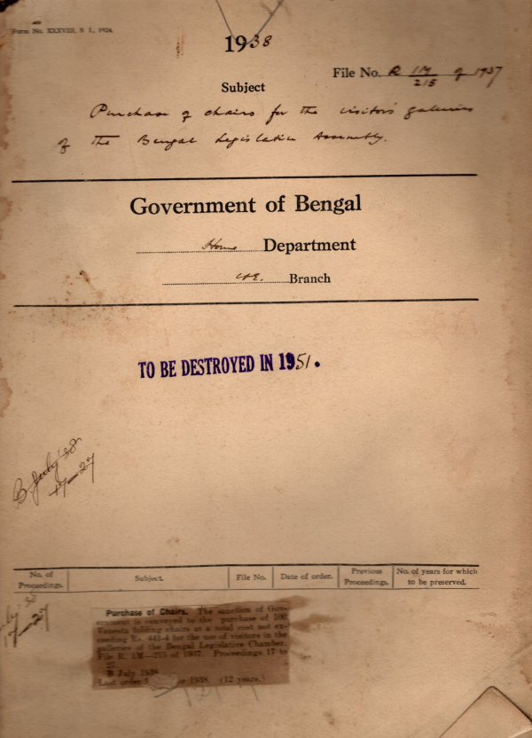 | Rack No. 08, Bundle No. 05, SI No. 260 Amendments to the Fundamental & Subsidiary Rules. | Rack No. 08, Bundle No. 05, SI No. 261 Exclusion from Govt. Service of Ex-Naik Dhyan Singh, late a Daftary in the Indian soldiers Board. | Rack No. 08, Bundle No. 05, SI No. 262 Addresses presented to H.E. at Birbhum & his reply there to. | Rack No. 08, Bundle No. 05, SI No. 263 Purchase of Chairs for the Visitors galleries of the B.L.A. | Rack No. 08, Bundle No. 05, SI No. 264 Appointment of a temporary Gestetner operator in the B.L.A. during sessions. | Rack No. 08, Bundle No. 05, SI No. 265 Procedure for the assessment to British Income-Tax of the emoluments of officers going to U.K. on leave from India. | Rack No. 08, Bundle No. 05, SI No. 266 Supply of a copy of the Govt. of India Order, 1937 to the D.C. Darjeeling. |