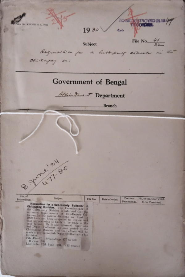 Requisition for a Sub-Deputy Collector in the Chittagong.