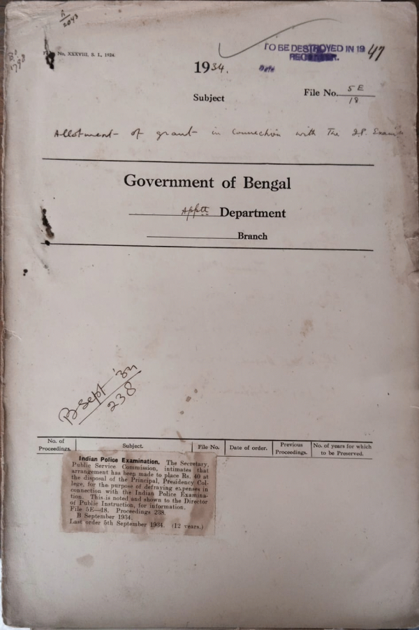 | Rack No. 2, Bundle No. 8, Sl No. 481 Employment of ICS officers an Judicial training during the Civil Court Vacation. | Rack No. 2, Bundle No. 8, Sl No. 482 Proposed confirmation of M/S. E. Springfield & E.H. Le. Brocq in the Superior Scale of the Indian Police. | Rack No. 2, Bundle No. 8, Sl No. 483 Representation of the B.I.C.S Association regarding their pay. | Rack No. 2, Bundle No. 8, Sl No. 484 Allotment of grant in connection with the Indian Police Examination. | Rack No. 2, Bundle No. 8, Sl No. 485 Memo rail of Mr. L.H. Burton of the Indian Police regarding his domicile. | Rack No. 2, Bundle No. 8, Sl No. 486 Temporary appointment of Khan Bahadur Amir Ahmed as S.P. Dinajpur. | Rack No. 2, Bundle No. 8, Sl No. 487 Appointment of the Revd. E. J. Young as a Captain of Barrackpur. |