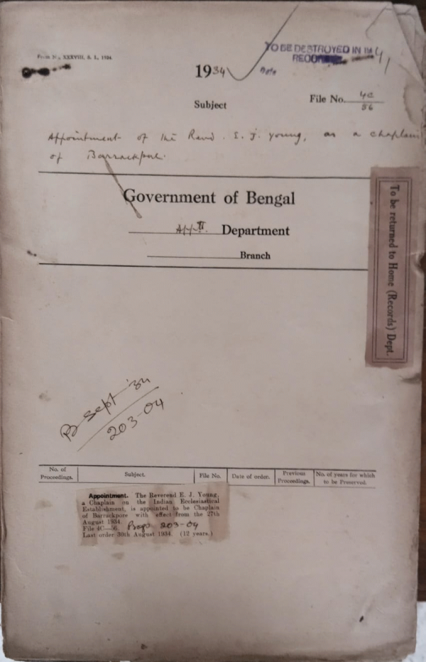 Appointment of the Revd. E. J. Young as a Captain of Barrackpur.