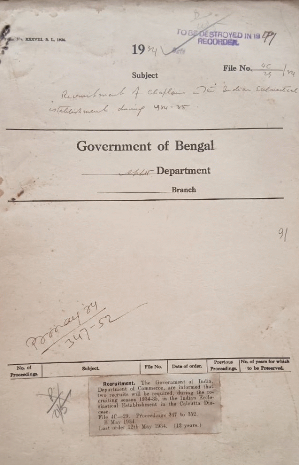 Recruitment of Chaplains on the Indian Ecclesiastical Establishment during 1934-35.