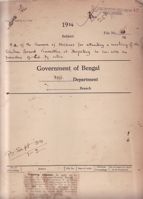 | Rack No. 02, Bundle No. 13, Sl No. 810 Summary powers of Mr. Viresh Chandra Datta Deputy Magistrate Dinajpur. | Rack No. 02, Bundle No. 13, Sl No. 811 Note from Rai Sahib Panchanan Barma regarding appointment of Backward class to Ministerial service in District of Dinajpur. | Rack No. 02, Bundle No. 13, Sl No. 812 Application of Babu Mohit Kumar Banerjee for admission to the Indian Police Examination. | Rack No. 02, Bundle No. 13, Sl No. 813 T.A. of commissioners of Divisions to attend the meetings of a committee of Selection Board at Darjeeling. | Rack No. 02, Bundle No. 13, Sl No. 814 Employment of a temporary peon in the Midnapur Collectorate for work in connection with election. | Rack No. 02, Bundle No. 13, Sl No. 815 Legislative Assembly Electoral Rules and Regulations. | Rack No. 02, Bundle No. 13, Sl No. 816 Application from Mr. Shushil Kumar Mitter for admission to the Indian Audit Examination 1934. |