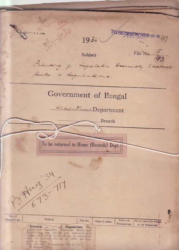 | Rack No. 02, Bundle No. 13, Sl No. 812 Application of Babu Mohit Kumar Banerjee for admission to the Indian Police Examination. | Rack No. 02, Bundle No. 13, Sl No. 813 T.A. of commissioners of Divisions to attend the meetings of a committee of Selection Board at Darjeeling. | Rack No. 02, Bundle No. 13, Sl No. 814 Employment of a temporary peon in the Midnapur Collectorate for work in connection with election. | Rack No. 02, Bundle No. 13, Sl No. 815 Legislative Assembly Electoral Rules and Regulations. | Rack No. 02, Bundle No. 13, Sl No. 816 Application from Mr. Shushil Kumar Mitter for admission to the Indian Audit Examination 1934. | Rack No. 02, Bundle No. 13, Sl No. 817 Posting of the candidates who appeared at the lost B.C.S. Examination. | Rack No. 02, Bundle No. 13, Sl No. 818 Expenditure incurred by the Chittagong Municipality for the preparation of electoral Rolls of the Legislative Assembly. |