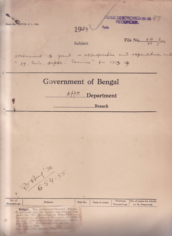 | Rack No. 02, Bundle No. 13, Sl No. 824 Extension of the temporary post of Additional Sessionions judge 24-Parganas. | Rack No. 02, Bundle No. 13, Sl No. 825 Distribution of work among the various departments of the Assam Secretariat. | Rack No. 02, Bundle No. 13, Sl No. 826 Contributory provident Fund India. | Rack No. 02, Bundle No. 13, Sl No. 827 Statement of Appropriation and Expenditure under "37" Miscellaneous Department Examines for 1933-34. | Rack No. 02, Bundle No. 13, Sl No. 828 Employment of women in service. | Rack No. 02, Bundle No. 13, Sl No. 829 Proposed transfer of live Junior Indian Civil Service officers from the Central Provinces to other province. | Rack No. 02, Bundle No. 13, Sl No. 830 Withdrawal of provident Fund Deposits for payment of insurance premium on pure endowment polices. |