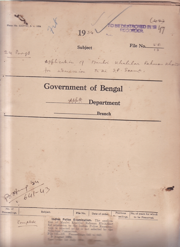 | Rack No. 02, Bundle No. 13, Sl No. 830 Withdrawal of provident Fund Deposits for payment of insurance premium on pure endowment polices. | Rack No. 02, Bundle No. 13, Sl No. 831 Application for admission to the I.P. Examination by Babu Amal Chandra Bagchi. | Rack No. 02, Bundle No. 13, Sl No. 832 Application of Maulvi Syed Abu Daud Fakhruddin Ahmed for admission to the I.P. Examination. | Rack No. 02, Bundle No. 13, Sl No. 833 Application of Maulvi. Khalekur Rahman Khundakar for admission to the I.P. Examination. | Rack No. 02, Bundle No. 13, Sl No. 834 Application of Babu Ranendra Chandra Guha for admission to the I.P. Examination. | Rack No. 02, Bundle No. 13, Sl No. 835 Application of Babu Subodh Kumar Gangopadhya for admission to the I.P. Examination. | Rack No. 02, Bundle No. 13, Sl No. 836 T.A. of Babu Provash Chandra Pathok, Sub-Deputy Collector Nadia, for delivery of certain lectures at Birnagar Rural Reconstruction Institute. |