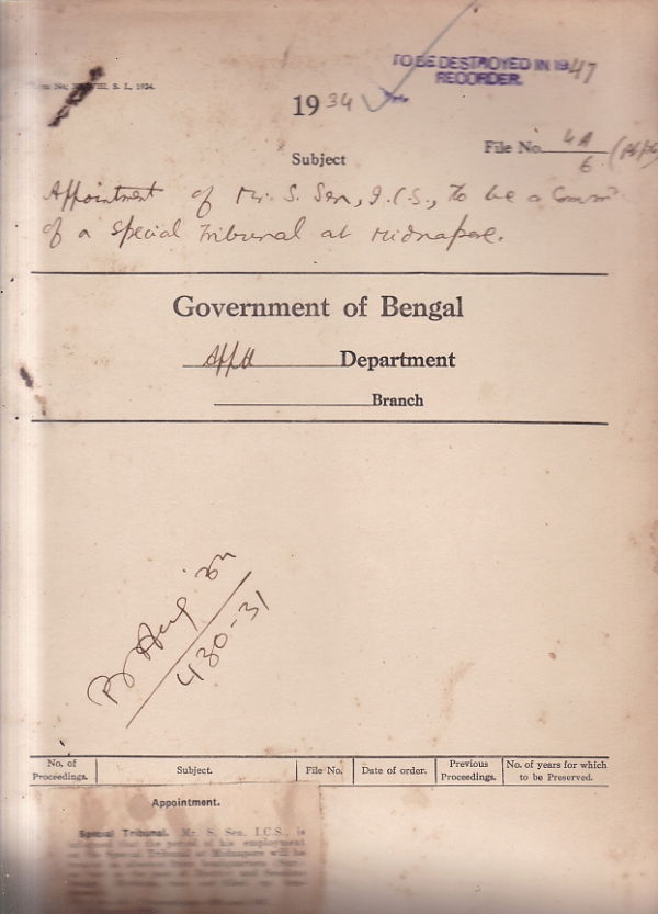 Appointment of Mr. S. Sen I.C.S. to be a commissioner of a special tribunal at Midnapore.