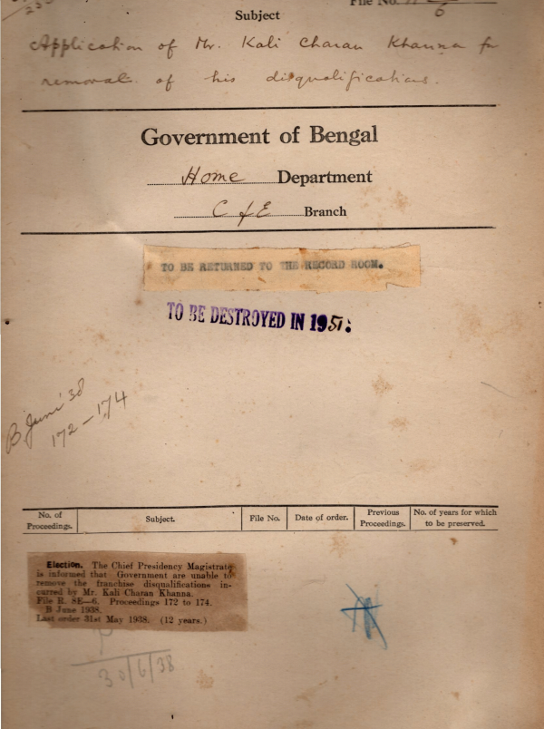 | Rack No. 08, Bundle No. 05, SI No. 279 Prompt disposal of inspection reports. | Rack No. 08, Bundle No. 05, SI No. 280 Application from Mr. C. Banarji for removal of disqualifications. | Rack No. 08, Bundle No. 05, SI No. 281 Procedure to be followed in connection with the circulation of govt. Bills to members of the Legislature. | Rack No. 08, Bundle No. 05, SI No. 282 Application of Mr. Kali Charan Khanna for removal of his disqualifications. | Rack No. 08, Bundle No. 05, SI No. 283 Instruction for reducing the bulk of the Bengal Civil List. | Rack No. 08, Bundle No. 05, SI No. 284 Provision of fire appliances in the Legislative Department. | Rack No. 08, Bundle No. 05, SI No. 285 Proposal in the matter of Allotment of Days and times for business in the Assembly. |
