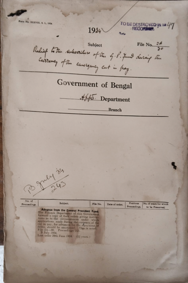 | Rack No. 2, Bundle No. 9, Sl No. 504 Appellate powers of Mr. E.A. Rampezzati, Deputy Magistrate Dacca. | Rack No. 2, Bundle No. 9, Sl No. 505 Statement of capital and Revenue account of non-public works residence. | Rack No. 2, Bundle No. 9, Sl No. 506 Warranting for delay in the Submission of Case record. | Rack No. 2, Bundle No. 9, Sl No. 507 Relief to the subscribers of the G.P. fund during the currency of the currency cut in pay. | Rack No. 2, Bundle No. 9, Sl No. 508 Application of Mr. K.G. Murshed I.C.S. Bengal for permission to appear at an examination in Russian language. | Rack No. 2, Bundle No. 9, Sl No. 509 Death report of Maulvi, Abdul Majid (No. II) Deputy Magistrate and Deputy Collector Assistant SecretaryP.W. Department. | Rack No. 2, Bundle No. 9, Sl No. 510 Travelling allowance of Mr. B.B. Sarkar, I.C.S. District Magistrate and collector, Khulna. |