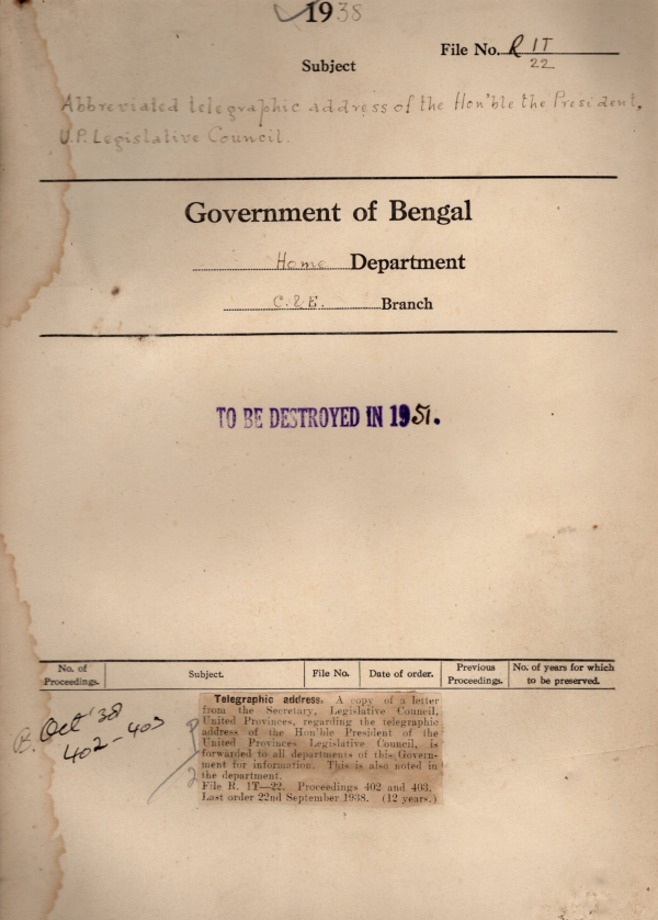 | Rack No. 08, Bundle No. 06, SI No. 299 Proposal for the enhancement of the pay of the temporary post created for the revision of the Secretariat Instruction & Compilation of election Manual. | Rack No. 08, Bundle No. 06, SI No. 300 Payment of travelling allowance from the boundary of the province to members who attend council meetings from their actively places. | Rack No. 08, Bundle No. 06, SI No. 301 Amendment to the Treasury Rules Bengal & the Subsidiary Rules. | Rack No. 08, Bundle No. 06, SI No. 302 Abbreviated telegraphic address of the Honorable the President U.P. legislative Council. | Rack No. 08, Bundle No. 06, SI No. 303 Advertisement of vacancies. | Rack No. 08, Bundle No. 06, SI No. 304 Prayer of M. Farhad Raza Choudhury M.L.A. for the correction of the entry of his name in the electoral rolls. | Rack No. 08, Bundle No. 06, SI No. 305 Circulation of cases among Ministers. |