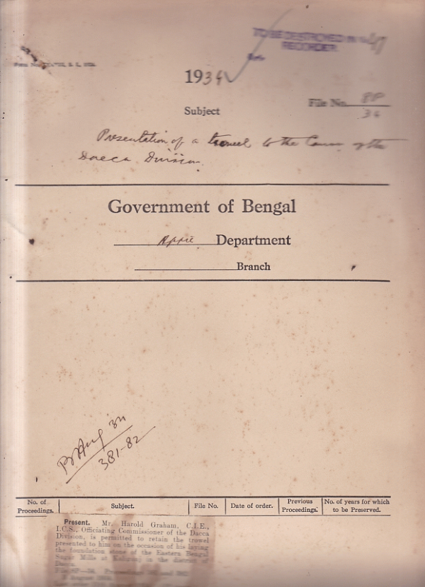 Presentation of a trowel to the Dacca Divisional.