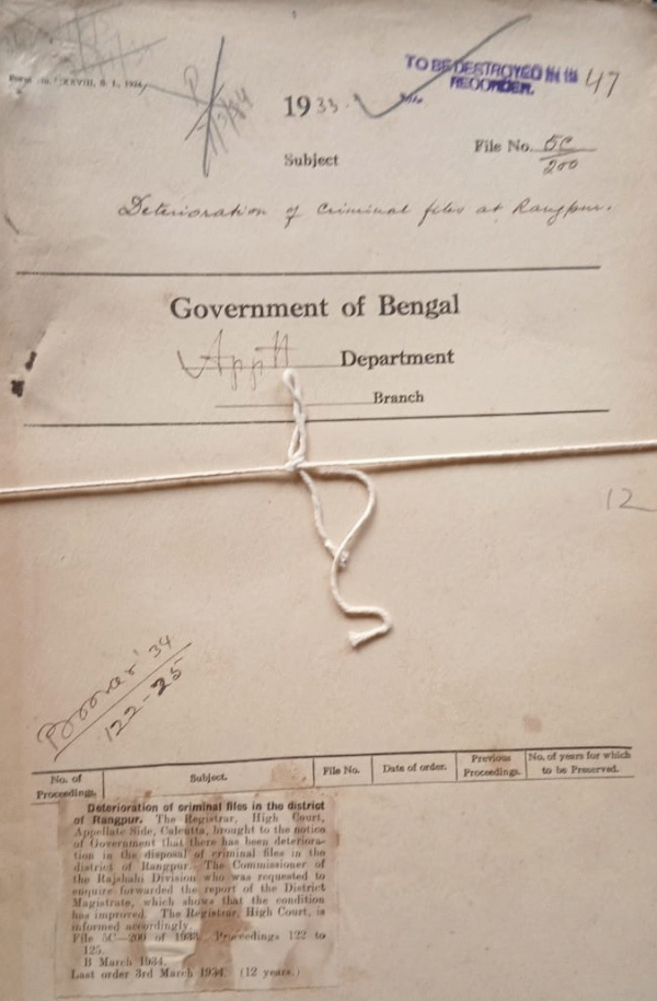Deterioration of Criminal files in the District of Rangpur.