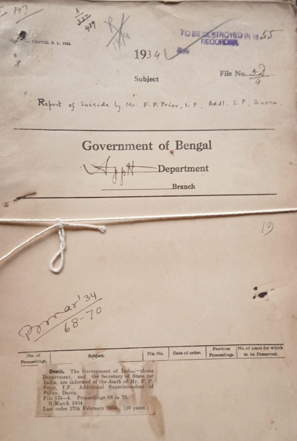 | Rack No. 2, Bundle No. 04, Sl No. 216 Replacement of the Services of Mr. W.H. Lewis, I.P. at the disposal of the India Government | Rack No. 2, Bundle No. 04, Sl No. 217 Counting of military service towards civil pension. | Rack No. 2, Bundle No. 04, Sl No. 218 Requisition for a copy of the letter addressed to the Governmentof India in connection with the application of Mr. W.N. Chowdhury. | Rack No. 2, Bundle No. 04, Sl No. 219 Report of suicide by Mr. F.P. Prior, I.P. Additional, S.P. Dacca. | Rack No. 2, Bundle No. 04, Sl No. 220 Appointment of a vice-president of the Bengal Executive council of the governor of Bengal. | Rack No. 2, Bundle No. 04, Sl No. 221 Resignation by Mr. G.G. Hooper I.C.S. of his office of member Bengal legislative Council. | Rack No. 2, Bundle No. 04, Sl No. 222 Joining time of Molvi. Muhammad A. Khaleque Sub-Deputy. Collector, Khulna. |