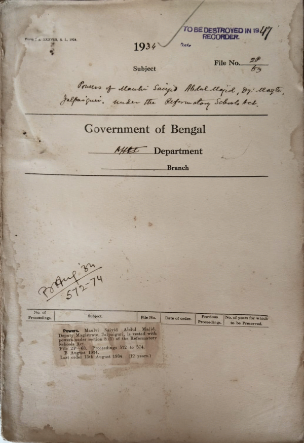 Powers of Maulvi. Saijid Abdul Majid Deputy Magistrate Jalpaiguri, Under the Reformatory Schools under the Reformatory Schools Act.