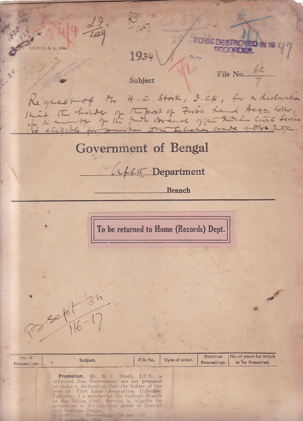 | Rack No. 02, Bundle No. 14, Sl No. 869 Estimates of expenditure in connection with the Indian police exam Act 1935-36. | Rack No. 02, Bundle No. 14, Sl No. 870 Budget estimates under the head, "28 Ecclesiastical" for 1935-36. | Rack No. 02, Bundle No. 14, Sl No. 871 Second class powers S.N. Mukharji and B.B.G. Kanjilal Subdeputy Magistrate. | Rack No. 02, Bundle No. 14, Sl No. 872 Request of Mr. H.C. Stork, I.C.S. for a declaration that holder of the post of First land acquisition Collector. | Rack No. 02, Bundle No. 14, Sl No. 873 Application of Babu R.K. Mukherjee for admission to the I.P. Examination | Rack No. 02, Bundle No. 14, Sl No. 874 Rules of determine the cadre of the B.E.S. | Rack No. 02, Bundle No. 14, Sl No. 875 Address to the presented to H.E. the governor by the Tippera district Muslim Anjuman. |