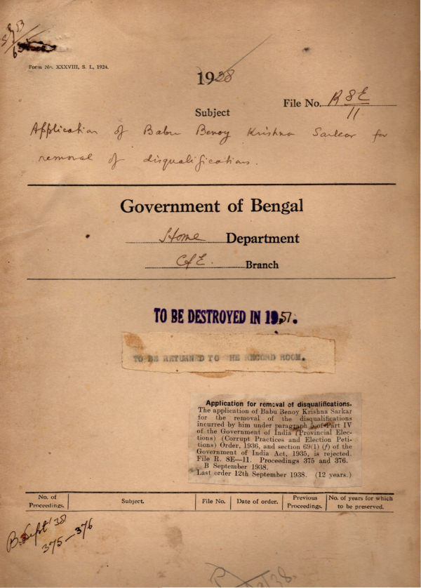 Application of Babu Benoy Krishna Sarkar for removal of disqualification.