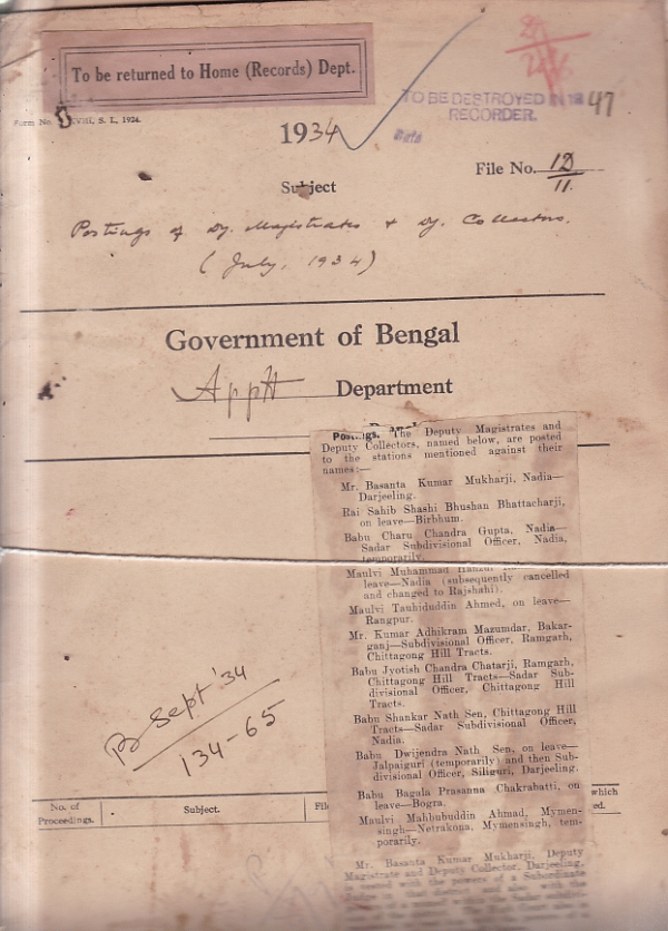 Postings of Deputy Magistrate + Deputy Collector (July, 1934).