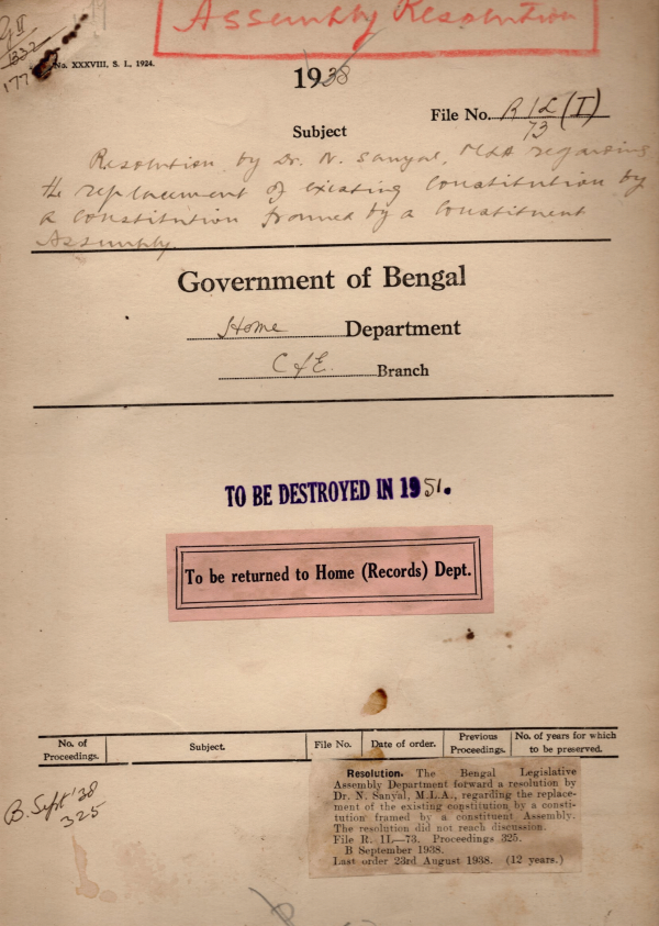 Resolution of by Dr. N. Sanyal M.L.A. regarding the replacement of the existing constitution.
