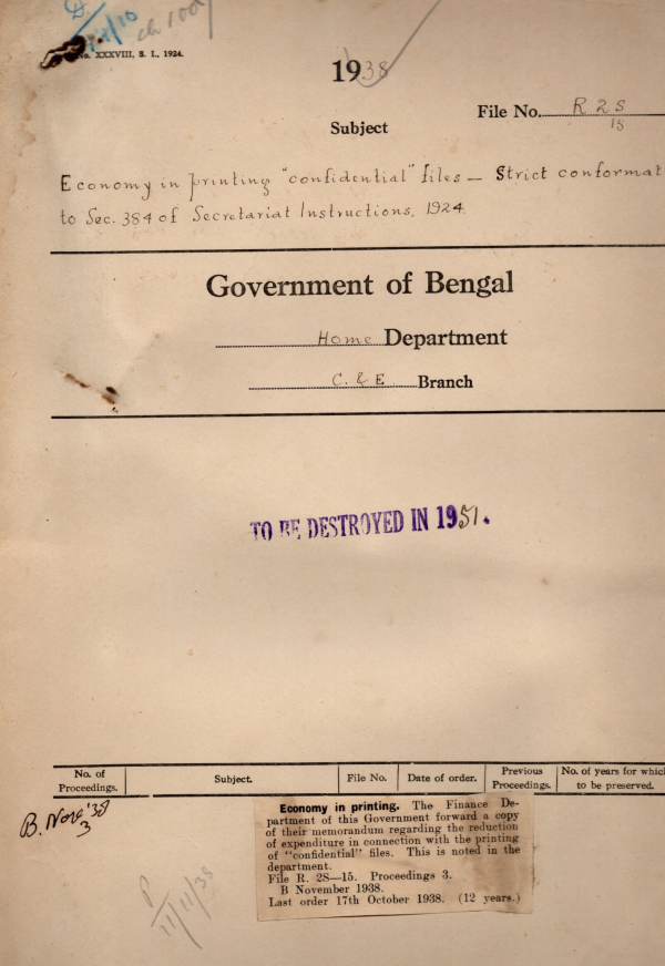 | Rack No. 08, Bundle No. 06, SI No. 364 Resolution of by Dr. N. Sanyal M.L.A. regarding the replacement of the existing constitution. | Rack No. 08, Bundle No. 06, SI No. 365 Fixating a swing door in the room of the Registrar, B.L.C. | Rack No. 08, Bundle No. 06, SI No. 366 Controlling officer in respect of the T.A. bills of officers & Staff of the B.L.A. & the B.L.C. | Rack No. 08, Bundle No. 06, SI No. 367 Economy in printing confidential files strict conformation of Sec. 384 of Secretariat Instructions, 1924. | Rack No. 08, Bundle No. 06, SI No. 368 Move of the B.L.A. & B.L.C. Departments to Darjeeling’s. | Rack No. 08, Bundle No. 06, SI No. 369 Budget Calendar for 1939-40. | Rack No. 08, Bundle No. 06, SI No. 370 Procedure for addressing communications to the C&W Department as a whole & two different branches. |