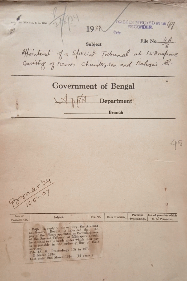Appointment of a Special tribunal at Midnapore.