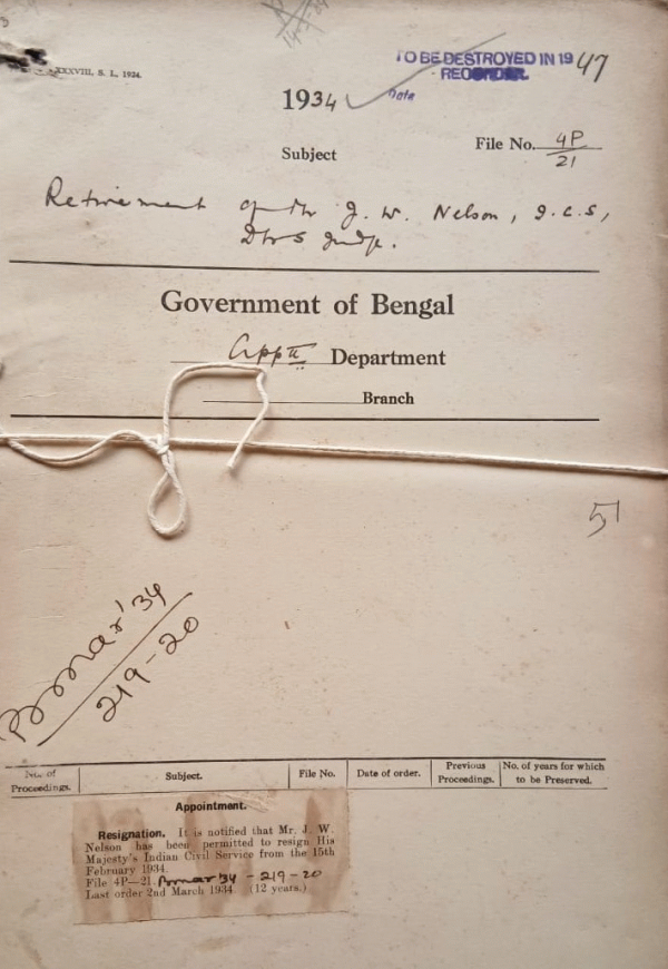 Retirement of Mr. J.W. Nelson, I.C.S. (Judges).