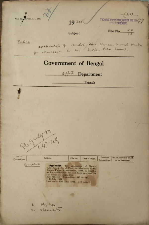 | Rack No. 2, Bundle No. 10, Sl No. 569 Progress of Indianisaiton in the Superior Civil Services | Rack No. 2, Bundle No. 10, Sl No. 570 Application of Babu B.B. Banarji for admission to the Indian Police Examination | Rack No. 2, Bundle No. 10, Sl No. 571 Application of Mr. K. Subrahmanian for admission to the Indian Police Examination | Rack No. 2, Bundle No. 10, Sl No. 572 Application of Maulvi. A.N. Nurul Huda for admission to the Indian Police Exam. | Rack No. 2, Bundle No. 10, Sl No. 573 Application of Babu T.K. Bhaumik for admission to the Indian Police Exam. | Rack No. 2, Bundle No. 10, Sl No. 574 Application of Maulvi K.I.M. Golam for admission to the Indian Police Exam. | Rack No. 2, Bundle No. 10, Sl No. 575 Application of Babu R.N. Ghosh for admission to the Indian Police Exam. |