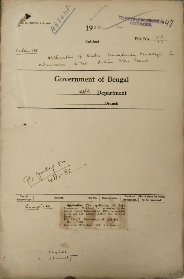 | Rack No. 2, Bundle No. 10, Sl No. 573 Application of Babu T.K. Bhaumik for admission to the Indian Police Exam. | Rack No. 2, Bundle No. 10, Sl No. 574 Application of Maulvi K.I.M. Golam for admission to the Indian Police Exam. | Rack No. 2, Bundle No. 10, Sl No. 575 Application of Babu R.N. Ghosh for admission to the Indian Police Exam. | Rack No. 2, Bundle No. 10, Sl No. 576 Application of Babu U.K. Mukharji for admission to the Indian Police Exam. | Rack No. 2, Bundle No. 10, Sl No. 577 Application of Mauliv K. Alam for admission to the Indian Police Exam. | Rack No. 2, Bundle No. 10, Sl No. 578 Application of Mr. Gregory Gomesh for admission to the Indian Police Exam. | Rack No. 2, Bundle No. 10, Sl No. 579 Application of Maulvi Mahfuzur Rhaman for admission to the Indian Police Exam. |