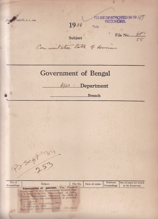 | Rack No. 02, Bundle No. 15, Sl No. 915 Proposed Surrender of a part of the Compound of Christ Chureh, Comilla. | Rack No. 02, Bundle No. 15, Sl No. 916 Application from Mrs. L. Prior widow of Mr. F.P. Prior widow of Mr. F.P. Prior I.P. Bengal, for the grant of a compassionate allowance. | Rack No. 02, Bundle No. 15, Sl No. 917 Addresses to the presented to H/E. the governor at Noakhali. | Rack No. 02, Bundle No. 15, Sl No. 918 Commutation table of pensions. | Rack No. 02, Bundle No. 15, Sl No. 919 List of officers in receipt of a permanent months T.A. | Rack No. 02, Bundle No. 15, Sl No. 920 Report of marriage of Mr. G. Rateliff, I.C.S., S.D.O. Narayanganj Dacca. | Rack No. 02, Bundle No. 15, Sl No. 921 Reduction of permanent T.A. of Government officers shown under G.A. |