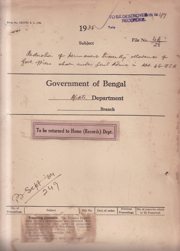 | Rack No. 02, Bundle No. 15, Sl No. 918 Commutation table of pensions. | Rack No. 02, Bundle No. 15, Sl No. 919 List of officers in receipt of a permanent months T.A. | Rack No. 02, Bundle No. 15, Sl No. 920 Report of marriage of Mr. G. Rateliff, I.C.S., S.D.O. Narayanganj Dacca. | Rack No. 02, Bundle No. 15, Sl No. 921 Reduction of permanent T.A. of Government officers shown under G.A. | Rack No. 02, Bundle No. 15, Sl No. 922 Notability of pay of officers holding listed posts. | Rack No. 02, Bundle No. 15, Sl No. 923 Proposed confirmation of certain B.C.S. (Judge) officers in listed posts of District and Sessionions Judge. | Rack No. 02, Bundle No. 15, Sl No. 924 Discontinuance of transfer of Governmentservants without T.A. & D.A. |