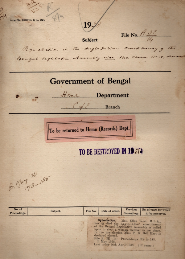 Bye-election in the Anglo-Indian Constituency of the Bengal legislative Assembly Vice Mrs. Ellen West.