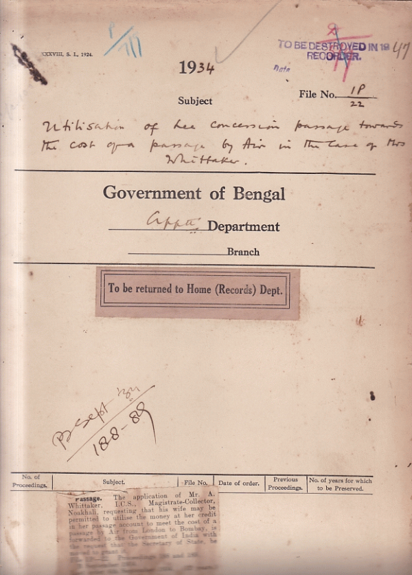 | Rack No. 02, Bundle No. 15, Sl No. 926 Good work done by Babu Surendra Nath Mukherji, Sub-Deputy Collector, Murshidabad. | Rack No. 02, Bundle No. 15, Sl No. 927 Allocation of Candidates of Successful I.C.S. Candidates. | Rack No. 02, Bundle No. 15, Sl No. 928 First class pension of Babu Harendra Naryan Bose Deputy Collector, Mymensingh. | Rack No. 02, Bundle No. 15, Sl No. 929 Utilization of Lee Concession passage towards the cost of a passage by Mr. A. Whittaker. | Rack No. 02, Bundle No. 15, Sl No. 930 Selection of an officer for appointment as assistant Secretary, L.S.G. Department. | Rack No. 02, Bundle No. 15, Sl No. 931 Appointment of a special tribunal at Suri, Birbhum. | Rack No. 02, Bundle No. 15, Sl No. 932 Application from Mr. H. Quinter, I.C.S. for withdrawal of money in the P.F. |