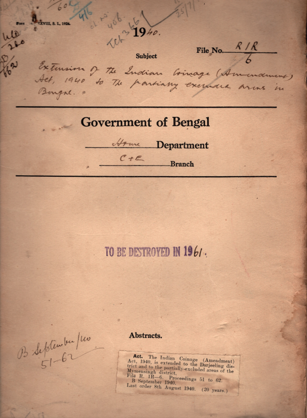 Extension of the Indian Coinage (Amendment) Act, 1940. To the Darjeeling District.