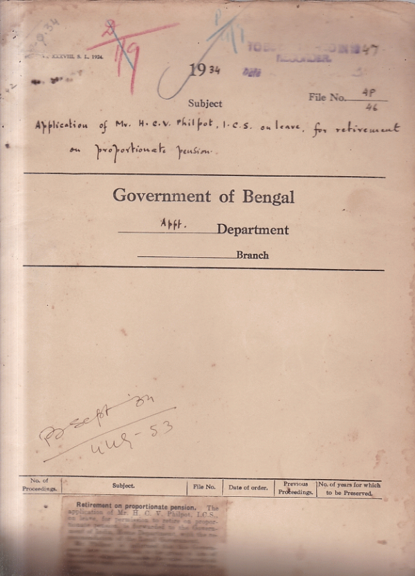 | Rack No. 02, Bundle No. 15, Sl No. 933 Nomination of Babu Amulyan Dhan Roy, M.L.C. to the legislative Assembly. | Rack No. 02, Bundle No. 15, Sl No. 934 Debarring from obtaining employment under govt. | Rack No. 02, Bundle No. 15, Sl No. 935 Representation of the Bengal Mill Owners Association in Legislatures. | Rack No. 02, Bundle No. 15, Sl No. 936 Application of Mr. H.C.V. Philpot, I.C.S. for retirement on proportionate pension. | Rack No. 02, Bundle No. 15, Sl No. 937 Purchase of a motor car by the Rev. A.G. Cowhan, Captain of the Indian. | Rack No. 02, Bundle No. 15, Sl No. 938 Restoration of the name of Babu Birendra Nath Chandra Sen Gupta Sessionion & District Judges. | Rack No. 02, Bundle No. 15, Sl No. 939 Meeting between I.C.S. probations and Home and officers. |
